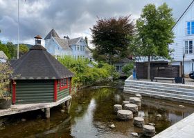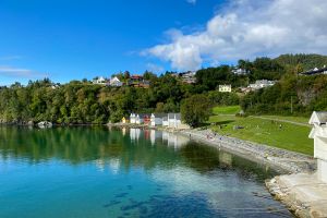 Olav had pointed out the start of a nice walk when we arrived and I decided to give it a go for my early morning walk the next day. It was a bit misty and quite cold first thing. After breakfast, Tone took me to her nearest town, Osøyro. It had a lovely harbour and some pretty streets. We then had coffee a bit further along the coast at the Solstrand Hotel; I remembered having been there on a previous visit in 2009.