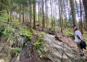 I did manage to fit in a few walks with Torolf. One day we walked over Bergstoppen via Eiktunet and we met a couple of people from Thailand who were out foraging for fungi. They had found quite a lot of hedgehog fungi and penny buns. There were also a lot of bilberries around which I couldn’t resist picking, slowing us down a bit. The walk took us by the Pensioners’ hut where some lovely red squirrels were eating the bird food.