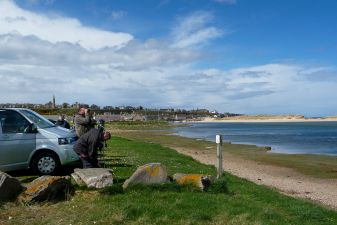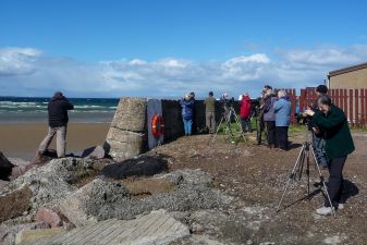 We had a lovely day at the Moray Firth. We had lunch at Spey Bay, a lovely spot where the Spey enters the Moray Firth. In the river mouth there were lots of ducks and geese, Goosanders, Red-breasted Merganser, Greylag, Barnacle and Pink-footed Geese to name a few. On the sea there were Scoters, Eider and Long-tailed Ducks. There were also plenty of waders to see. At Lossiemoth we watched both Artic and Great Skuas moving along the firth on their spring passage.